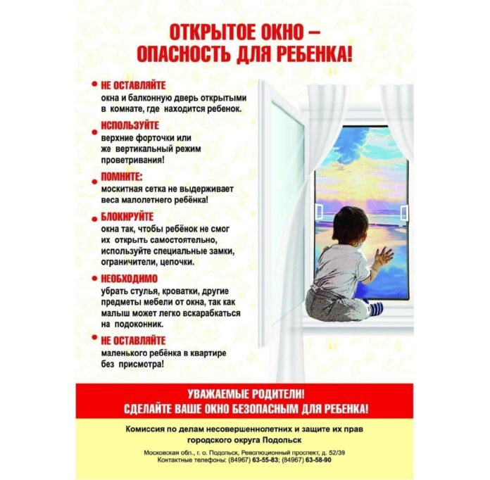 Уберите все предметы мебели, по которым ребенок может залезть на подоконник.