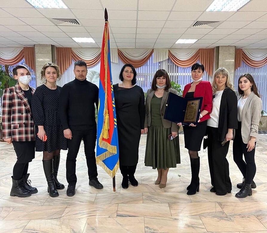 За достигнутые успехи в развитии социальной защиты населения в 2021 году переходящим знаменем отметили Волонтёрский центр Городского округа Подольск в лице руководителя Екатерины Немцовой.