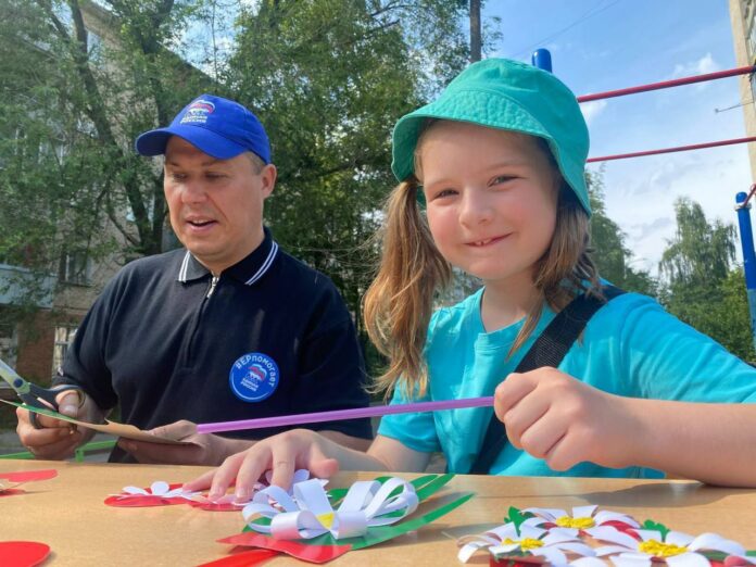 Развлекательная программа с раздачей сладких призов и изготовлением бумажных ромашек для юных подольчан микрорайона Кутузово специально организована и приурочена к празднованию Дня семьи, любви и верности.