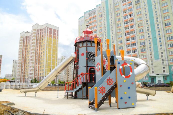 Многофункциональный игровой комплекс «Маяк» предназначен для детей в возрасте от 7 до 14 лет. Также на пешеходную зону бульвара завезли скамейки, урны, велопарковки, качели.