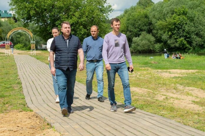 Первой точкой стал один из популярных у горожан пляж в парке имени Виктора Талалихина. Вместе с председателем Совета депутатов Городского округа Подольск Алексеем Никулиным осмотрели территорию. Порядка 30 лежаков, лавочки, урны, две площадки для игры в волейбол, раздевалки – всё в хорошем состоянии.