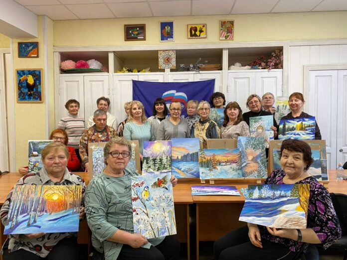 Сегодня художники изостудии «Гармония» губернаторской программы «Активное долголетие» продолжили работу над зимними пейзажами. Заложили основными цветами тоновые отношения и начали детальную проработку. Стихами поздравили именинниц, пожелали здоровья и вдохновения.