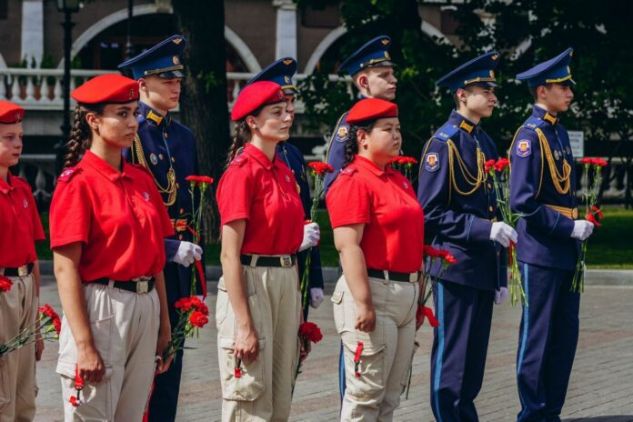 Подольские юнармейцы в составе делегации Московской области во главе с Секретарём подмосковной «Единой России», председателем Мособлдумы Игорем Брынцаловым, в День Памяти и скорби, 22 июня 2023 года, возложили цветы к Могиле Неизвестного Солдата в Александровском саду и памятнику Маршалу Победы Георгию Константиновичу Жукову Города-Героя Москвы.