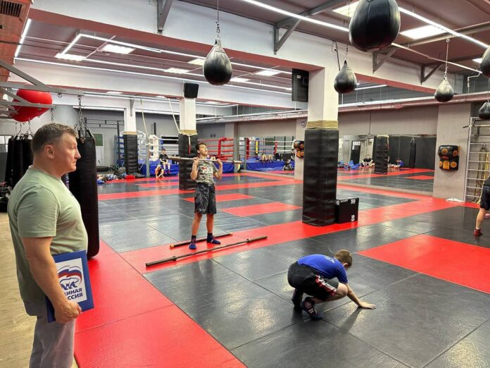 В рамках реализации федерального партийного проекта «Детский спорт» Всероссийской политической партии «Единая Россия» депутат Совета депутатов Городского округа Подольск, член фракции «Единая Россия», муниципальный координатор партийного проекта Юрий Стрелков провел с ребятами из спортивного клуба по рукопашному бою «Патриот» разминку перед основной тренировкой.