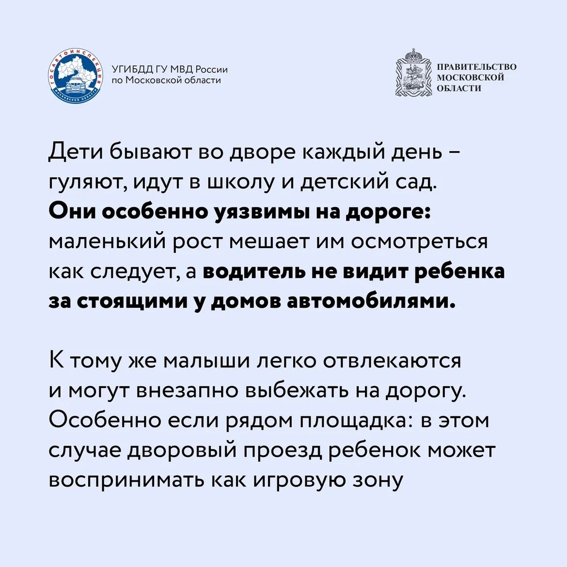 Необходимо, чтобы ребенок очень четко усвоил: нельзя без оглядки выбегать из подъезда, арки, из-за гаража или стоящей машины, прятаться за автомобили, цепляться за них. Навыки безопасного поведения, и не только на дороге, но и во дворе – это насущная необходимость. Начинать прививать их надо с самого раннего детства, и чем раньше – тем лучше.