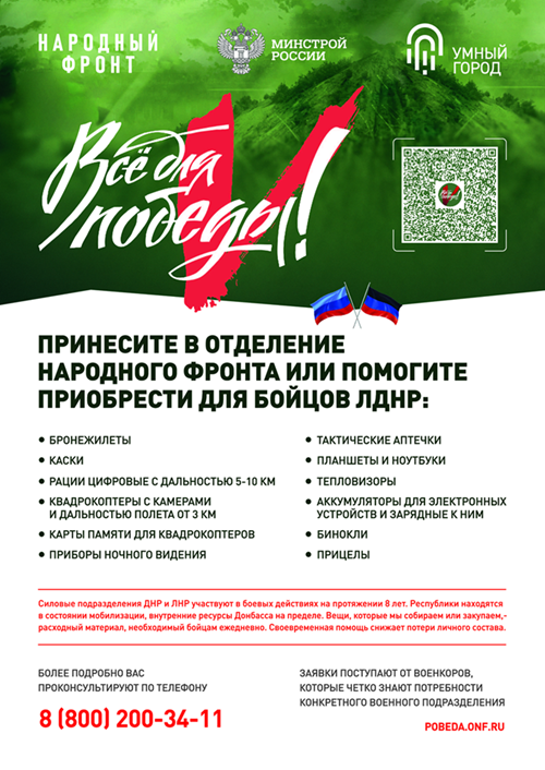 Информация о проводимых сборах доступна по QR-коду или на официальном сайте Народного Фронта: pobeda.onf.ru