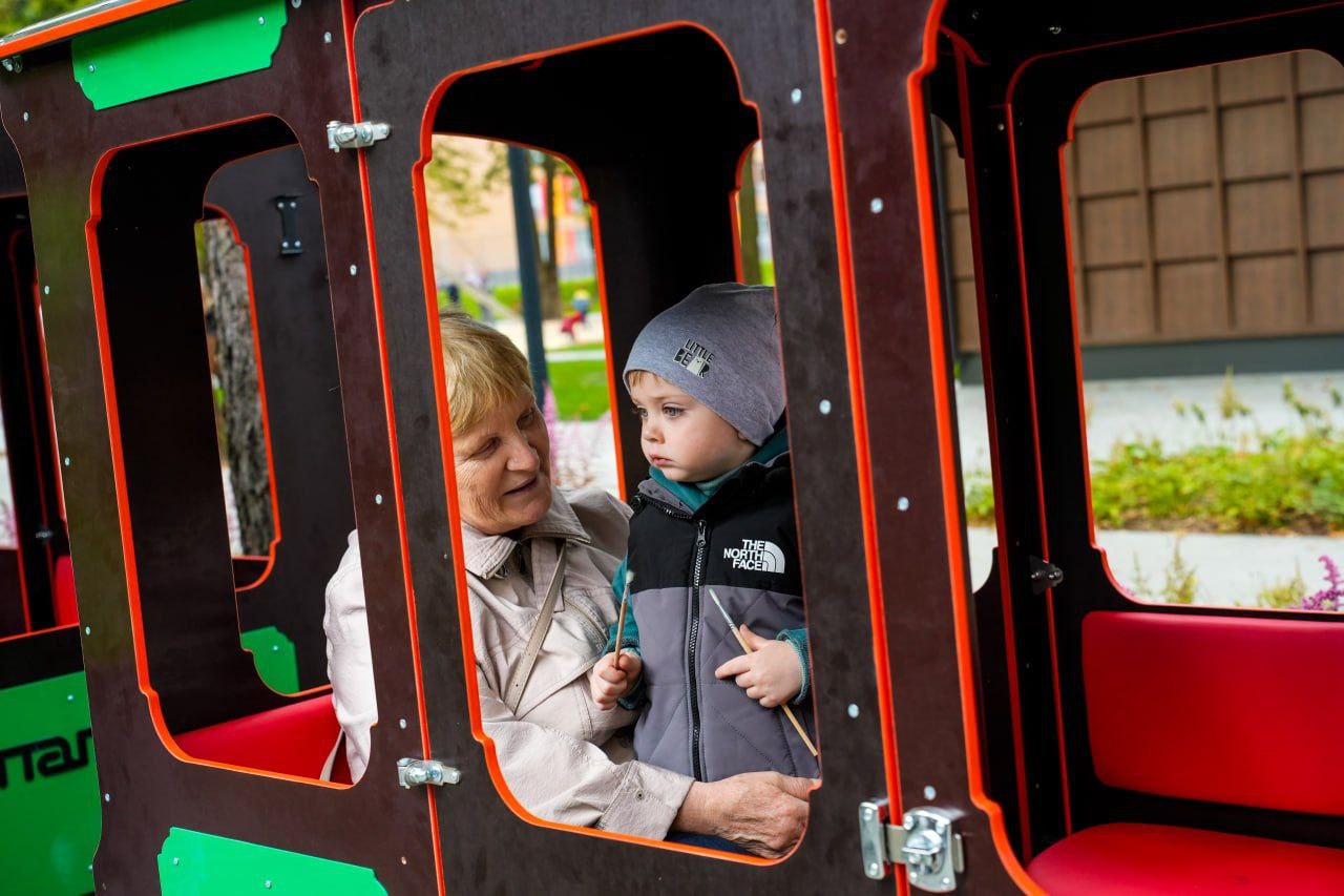 По территории уже начал курсировать детский паровозик.