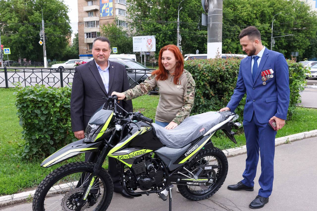 На выездной администрации для участников специальной военной операции поступило обращение от Светланы Мясиной, руководителя Комитета семей воинов Отечества по Городскому округу Подольск. Она просила приобрести мотоцикл для своего мужа, который был мобилизован.
