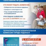 Для более чем 16 000 подольчан, зарегистрировавшихся на дистанционное электронное голосование, бюллетень будет доступен онлайн. Те, кто по состоянию здоровья или другим причинам не сможет прийти на участок, могут проголосовать на дому — заявление необходимо подать до 14:00 14 сентября. В населенных пунктах без стационарных помещений для голосования отработают выездные комиссии.