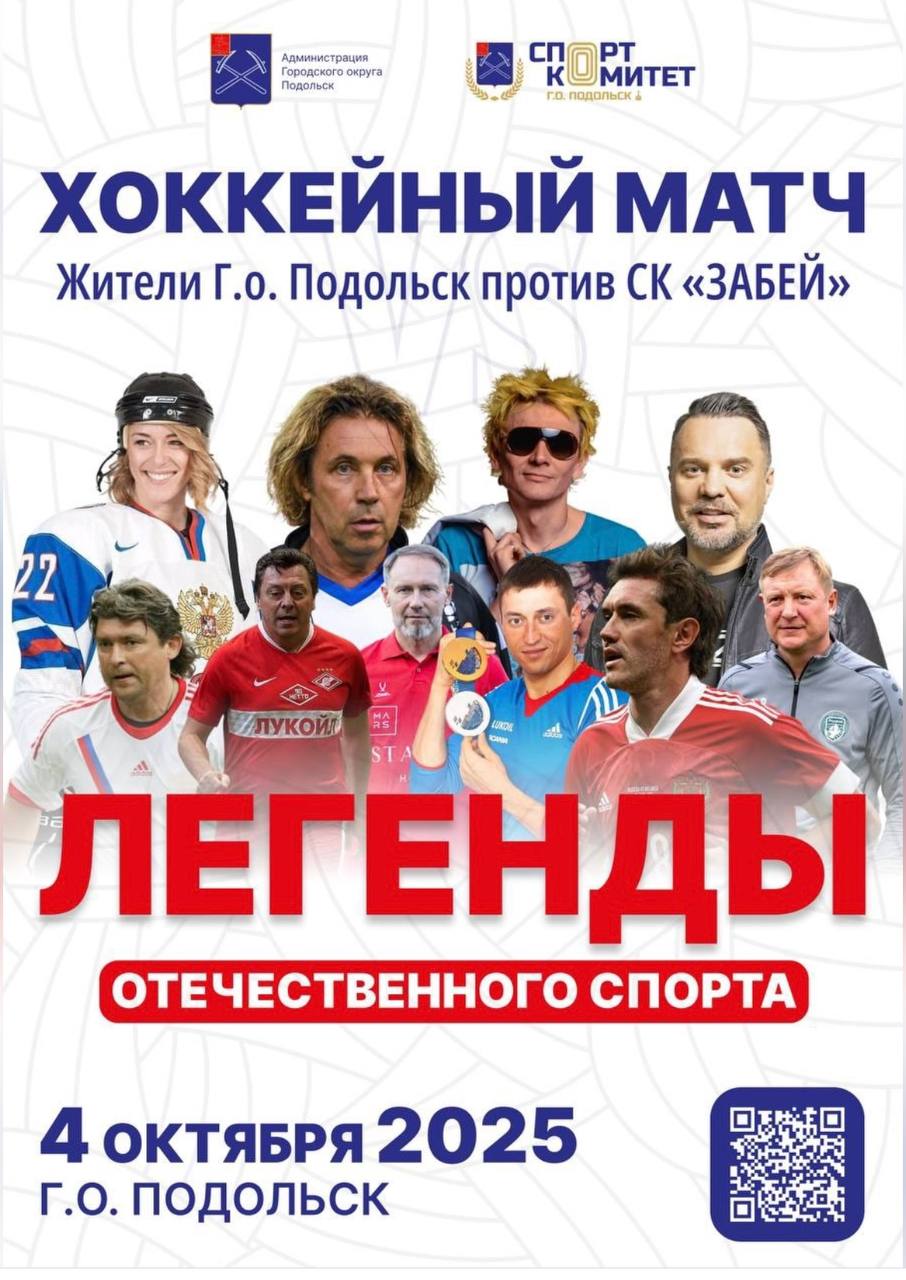 Александр Мостовой, Валерий Шмаров, Дмитрий Ананко, Владимир Бесчастных, Юрий Жирков, Александр Легков, Владимир Маминов, Руслан Осташко, Гарик Богомазов, Зоя Полунина, Виктор Зинчук, Вадим Ананьев, Ромарио — такой звездный состав футболистов и артистов из команды «Забей» во главе с Игорем Колывановым приедет на уникальный матч с подольскими хоккеистами.