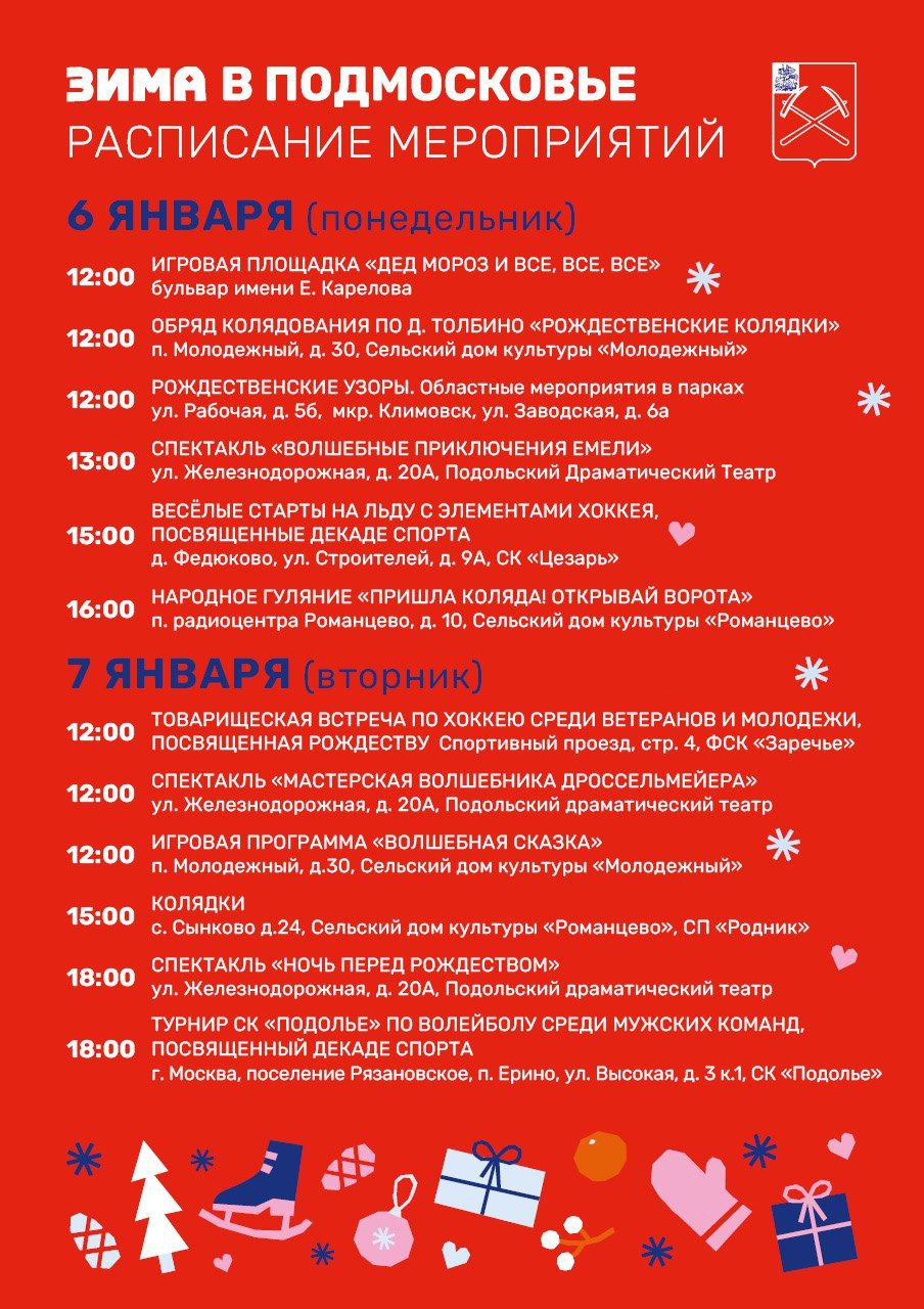 Массовые мероприятия в Подольске состоятся в первые дни 2025 года