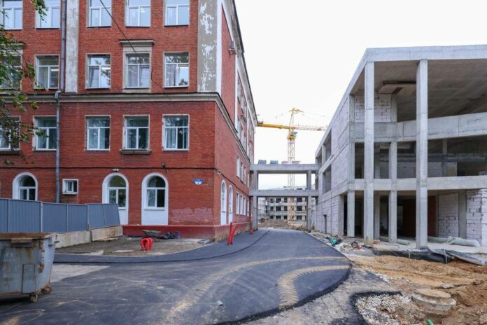 «Сейчас на объекте ведем работы по кладке парапетов, устройству перегородок, лестниц и укреплению конструкций. Уже видны очертания не только нового здания, но и перехода, который соединит его с исторической частью школы.