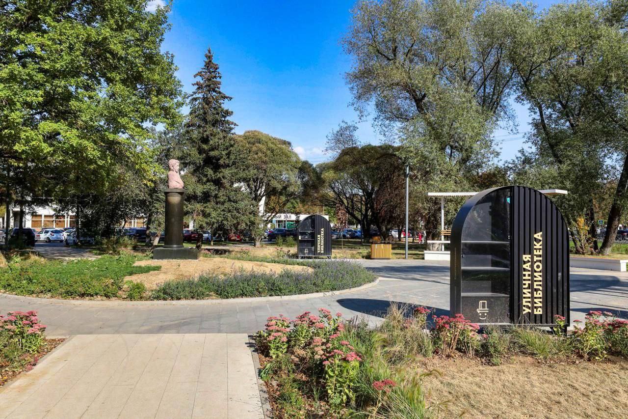 В сквере завершен важный этап работ по комплексному обновлению. Уже установлены новые удобные лавочки, современные детские качели, уличная библиотека для книгообмена и уютный амфитеатр для проведения культурных мероприятий.