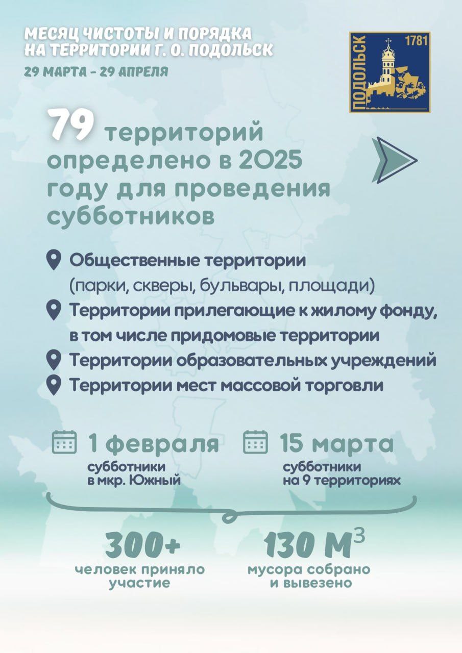 Это важная традиция, которая помогает не только улучшить Подольск, но и объединяет сотни людей. Особенно важно, чтобы молодежь принимала участие в таких мероприятиях — ведь для нее это прекрасная возможность проявить заботу о своём родном округе, почувствовать свою причастность к созданию чистоты. Обязательно приходите!»