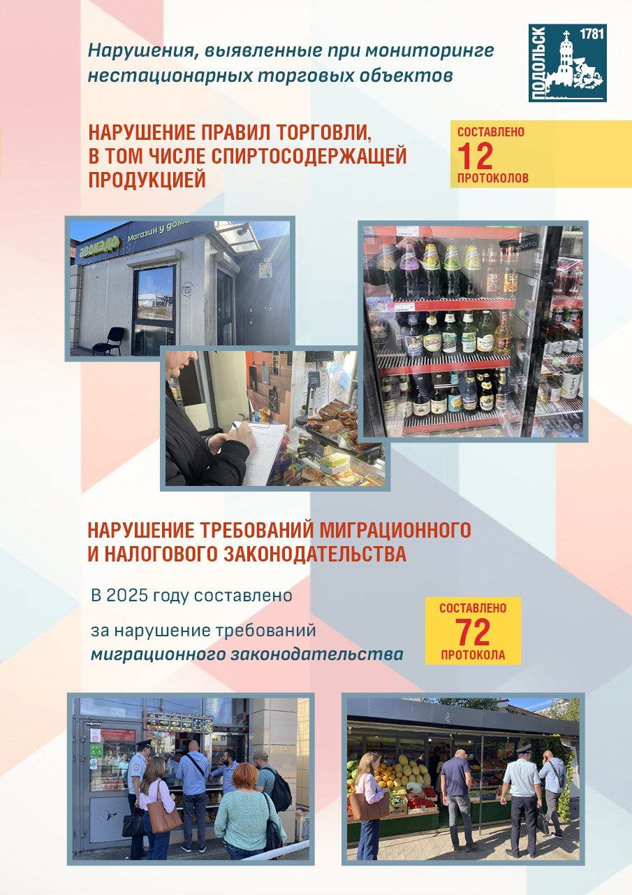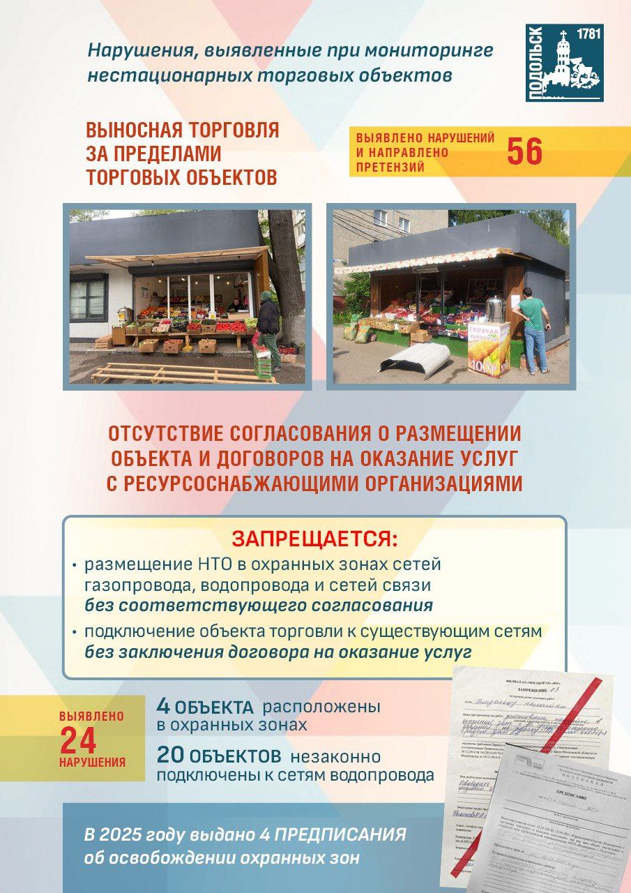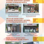 В 2025 году зафиксировали 51 случай работы не по профилю, 37 нарушений по изменению типа объекта, 107 несоответствий по внешнему облику. Выявлено 56 фактов выносной торговли. Кроме того, обнаружили незаконные подключения к сетям, сброс отходов, продажу алкоголя с нарушениями, несоблюдение миграционного и налогового законодательства. Часто получали сигналы от жителей о некачественных товарах и нарушениях санитарных норм. После демонтажа количество жалоб снизилось.