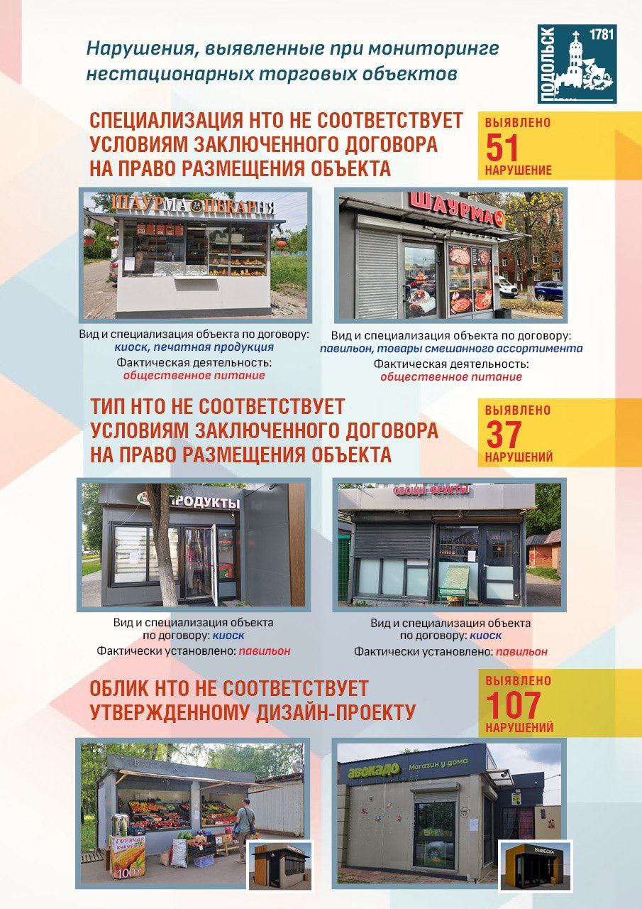 Почти сто из них были размещены на муниципальной земле. Проверки показали, что все эти НТО работали с нарушениями. Чаще всего торговые точки использовались не по назначению. Например, вместо киоска с печатной продукцией предприниматели открывали места общепита. Нередки случаи, когда без согласования менялся сам тип объекта: по договору должен был стоять киоск, а на деле появлялся павильон с увеличенной площадью. У многих и внешний вид не соответствовал утвержденному дизайн-проекту.