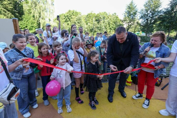 Новое игровое пространство площадью 200 квадратных метров включает в себя игровые комплексы, качели, горки, спортивные снаряды, а также скамейки, навесы и ограждения. Кроме того, на открытии площадки для ребят были организованы активные игры и конкурсы с призами.