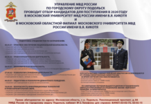 Общество Управление МВД России по городскому округу Подольск проводит отбор кандидатов для поступления в 2020 году в Московский университет МВД России имени В.Я. Кикотя и...