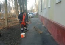 Обработку от гололедицы проводят на дворовых территориях в Городском округе Подольск