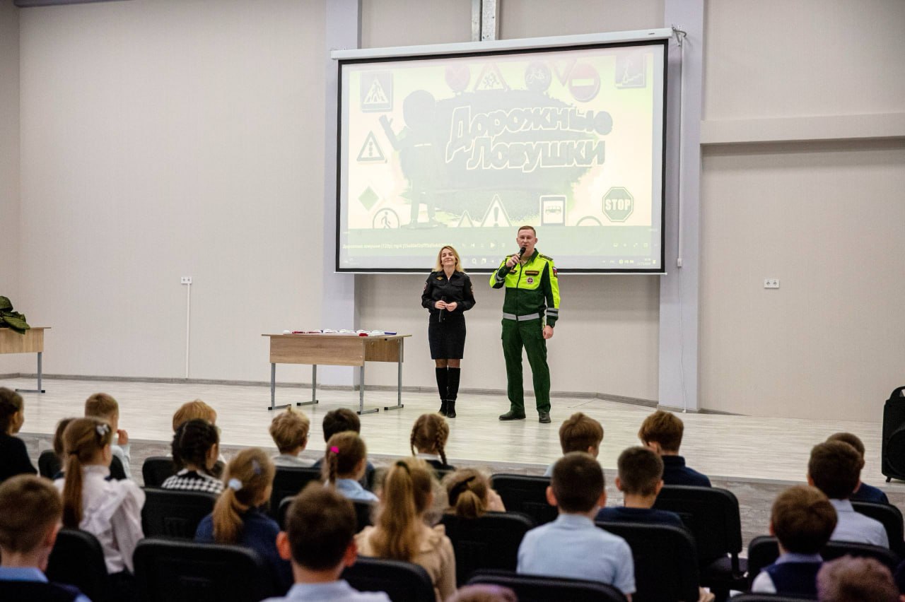 Сотрудники МЧС, инспекторы дорожной полиции и специалисты военной автоинспекции прибыли в третий корпус МОУ «Бородино» в жилом комплексе «Каскад Парк», чтобы провести занятие по безопасности. Мероприятие было организовано с целью напомнить детям о ключевых правилах безопасного поведения в преддверии новогодних праздников.