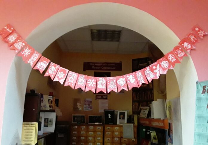 В библиотеке № 1 имени Павла Северного продолжает свою работу Любительское объединение «УЮТ-КОМПАНИЯ». В рамках любительского объединения проходят мастер-классы по подготовке к Новому году под названием «ФАБРИКА ДЕДА МОРОЗА». В этот раз наши читательницы-волшебницы, активные участницы творческого объединения внесли свой вклад в новогоднее украшение библиотеки. Они подготовили флажки в виде гирлянды с символикой «Зима в Подмосковье». А сотрудники библиотеки, с большим удовольствием, её развесили. Получилось необычно, красиво, а самое главное новое украшение привлекает взор читателей. Спасибо нашим феям из «Фабрики Деда Мороза»!