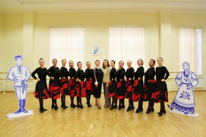 Участники коллектива представили мастер-класс по народному танцу, состоящий из упражнений в различных национальных стилях: шаги, народный станок, середина (припадания, дроби, дробная комбинация). Каждое упражнение демонстрировалась как законченный танцевальный фрагмент.