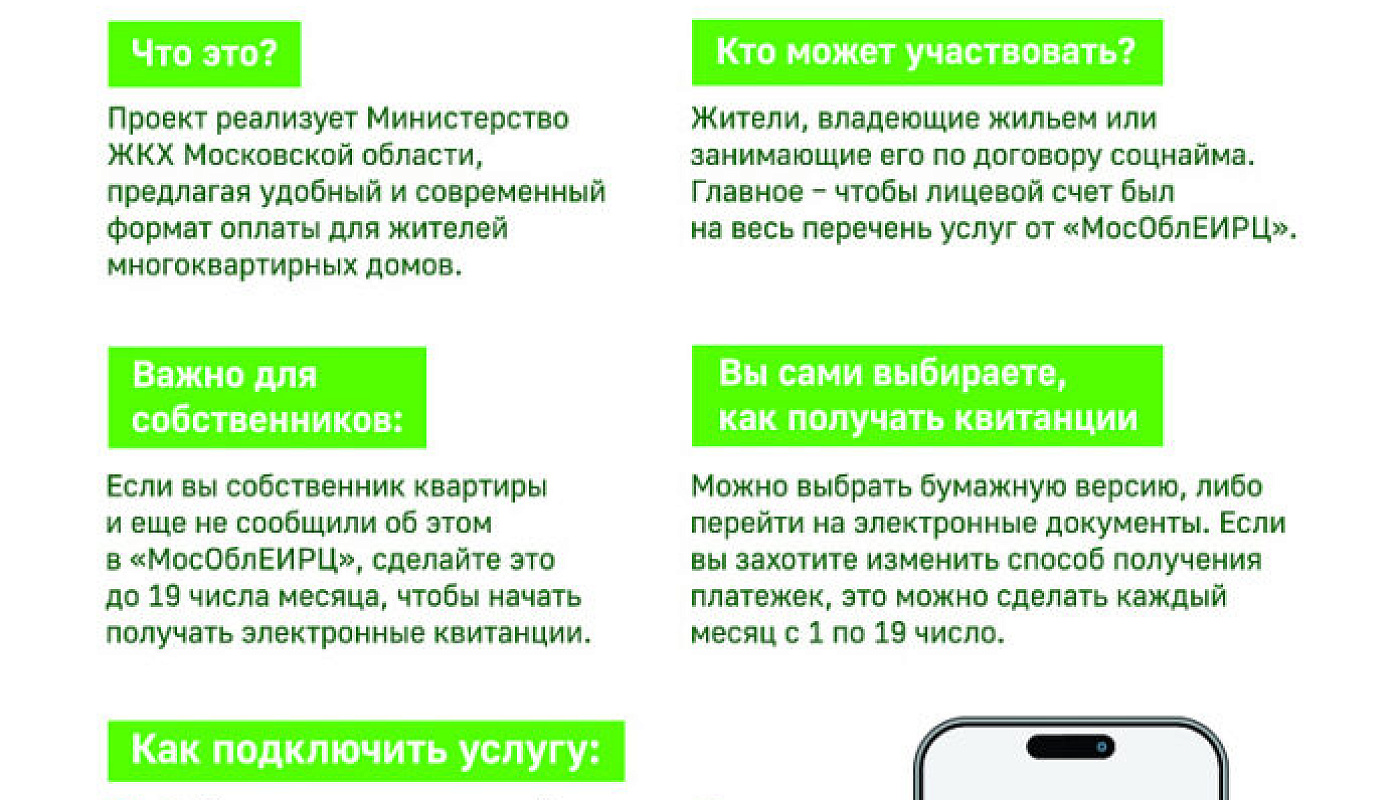 Министерство жилищного-коммунального хозяйства Московской области запустило пилотный проект, который позволит собственникам получать платежные документы в электронном виде на региональном портале госуслуг.