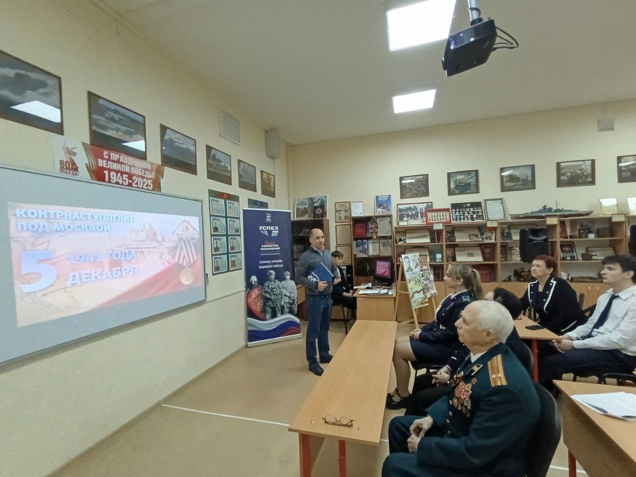 В военно-историческом музее Вооруженных Сил РФ, действующем на базе МОУ «Гимназия №7» (корпус 1) городского округа Подольск, состоялся урок мужества. Мероприятие, приуроченное к 84-й годовщине начала контрнаступления советских войск в битве под Москвой, было организовано для учащихся 11-х классов в рамках патриотического проекта «Успех V единстве поколений».