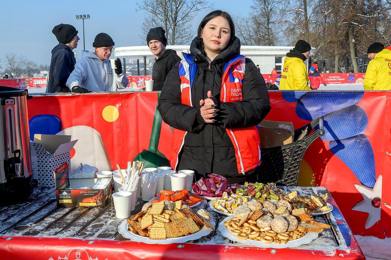 У катка работала точка с оригинальным названием «Это мне надо!», здесь волонтеры угощали студентов чаем и печеньем, чтобы ребята могли подкрепиться и согреться.