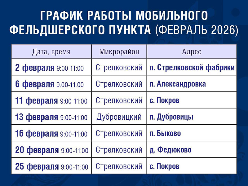 График работы мобильного ФАПа в Подольске в феврале 2026 года