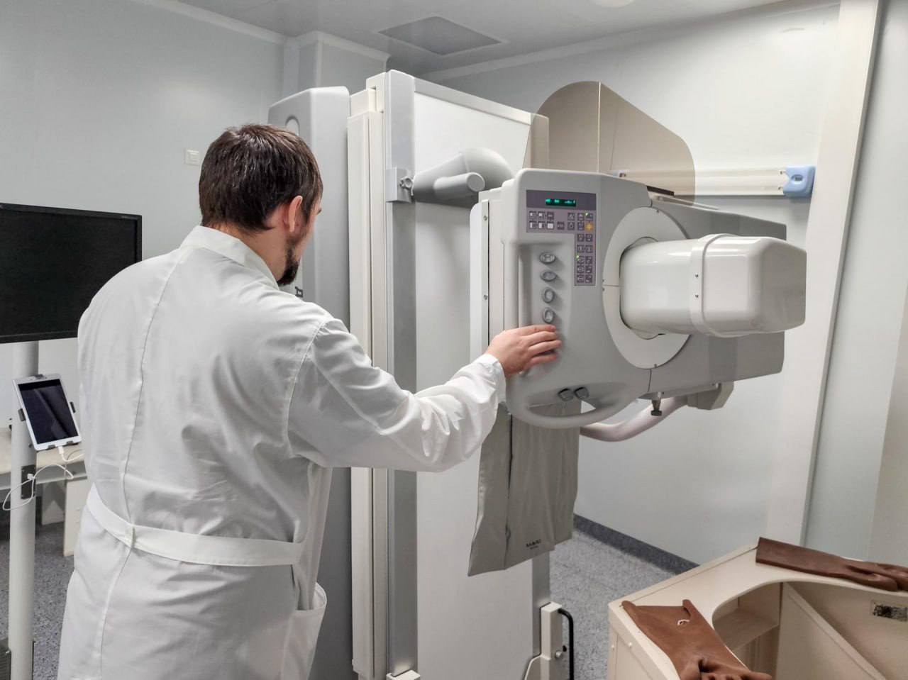 «Раньше здесь стоял старый аналоговый аппарат. Тогда время уходило на проявку снимков, и только после этого можно было их рассмотреть и поставить диагноз. Теперь работать намного удобнее. Снимок в высоком разрешении сразу доступен на компьютере», – отметил врач-рентгенолог Александр Гришин.