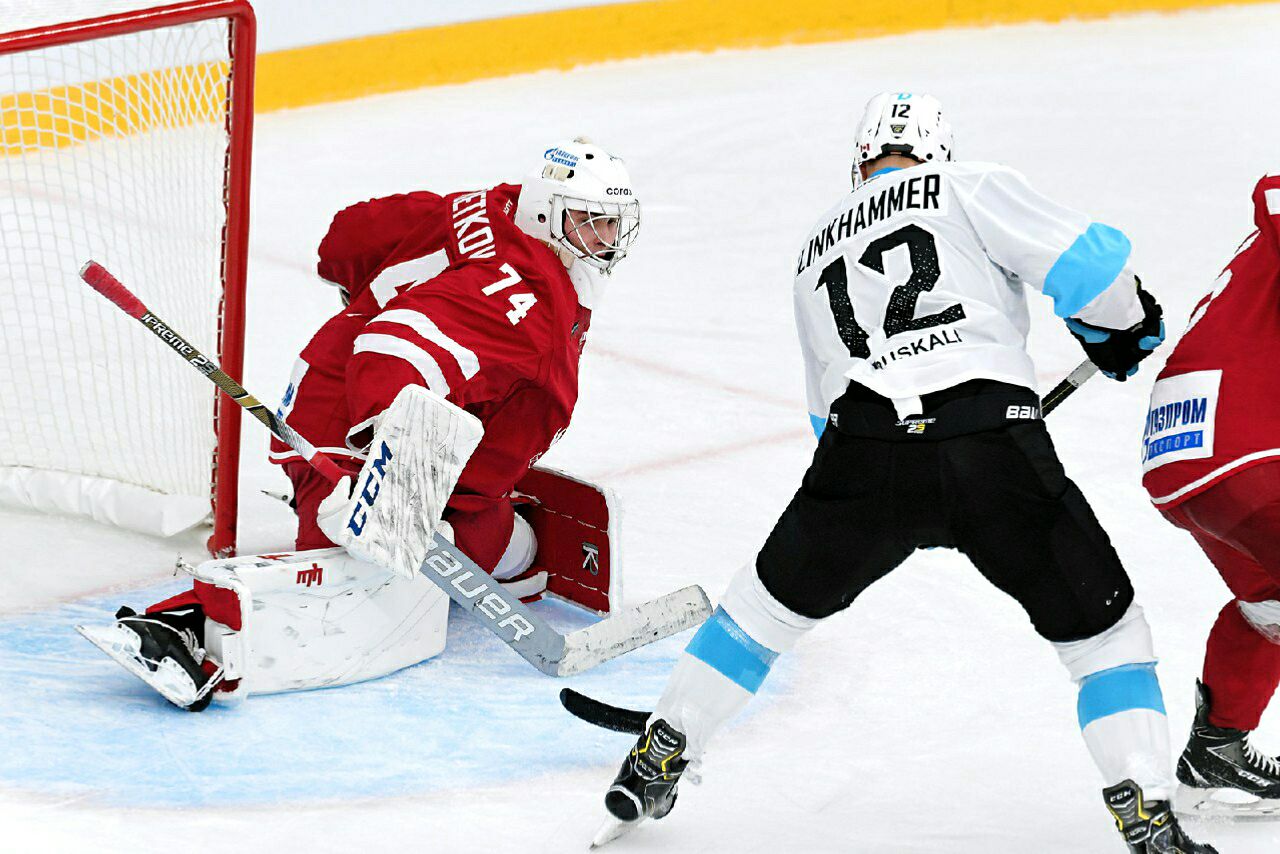 Запущенная шайба стремительно улетела за ворота в лицевой борт, и канадец Брэндон Козун «бильярдным попаданием» в узкую щелочку между стойкой и экипировкой вратаря «Витязей» Ильи Ежова открыл счет.