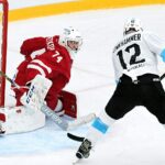 Потом пошли «качели» – капризная спортивная удача попеременно кочевала по ледовому полю от одних ворот к другим. Играя в большинстве, впятером против троих, «витязи» один раз сумели реализовать численный перевес: игрок команды Джастин Дэнфорт забил-таки свой первый гол в Континентальной хоккейной лиге.