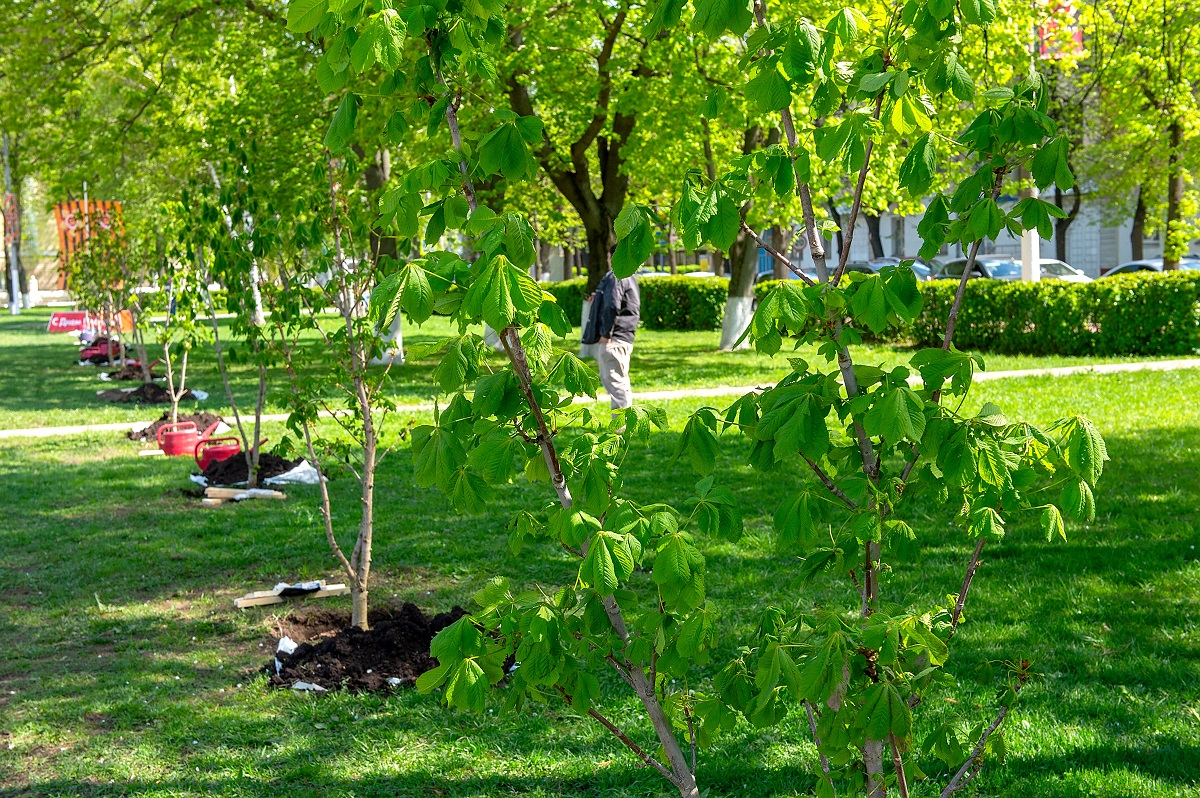 На площади Славы участники посадили 38 каштанов — считается, что каштан символизирует доблесть, победу добра над злом. А после работы всех желающих пригласили восстановить свои силы солдатской кашей и горячим чаем с лимоном.