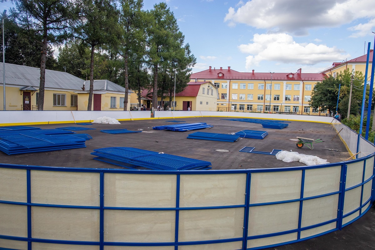 В микрорайоне Дубровицы продолжается ремонт хоккейной коробки, завершить его планируется в начале сентября.