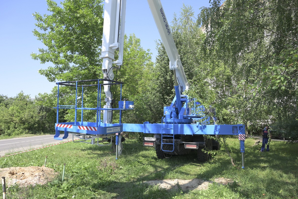 Чуть более месяца назад МБУ «Подольский комбинат благоустройства» закупил новую универсальную технику для опиловки деревьев. Это современная вышка «ВИПО-36», ее стрела может подниматься на высоту 36 метров. Установлен автогидроподъёмник на платформе автомобиля «КАМАЗ» и снабжен специальным бортовым компьютером, с помощью которого и регулируется весь процесс. Кроме того, эта вышка имеет уникальную особенность – она позволяет не только поднимать люльку вверх, но и проводить работы ниже уровня расположения транспортного средства.