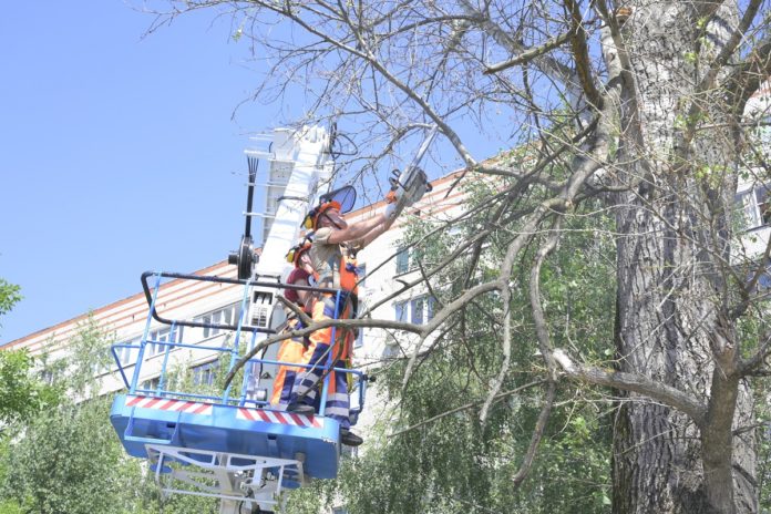 Опиловка деревьев в округе ведется в летний период ежедневно, именно сейчас наиболее заметны сухие ветки и стволы. В среднем в день сотрудники комбината опиливают по 10 деревьев, в месяц выходит от 150 до 200 единиц сухостоя. Как правило это старые либо аварийные деревья, превышающие предельный угол наклона над проезжей частью, а также детской и парковочной площадкой.