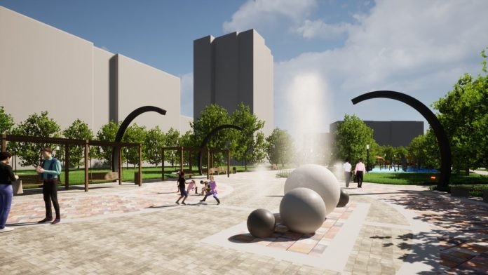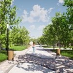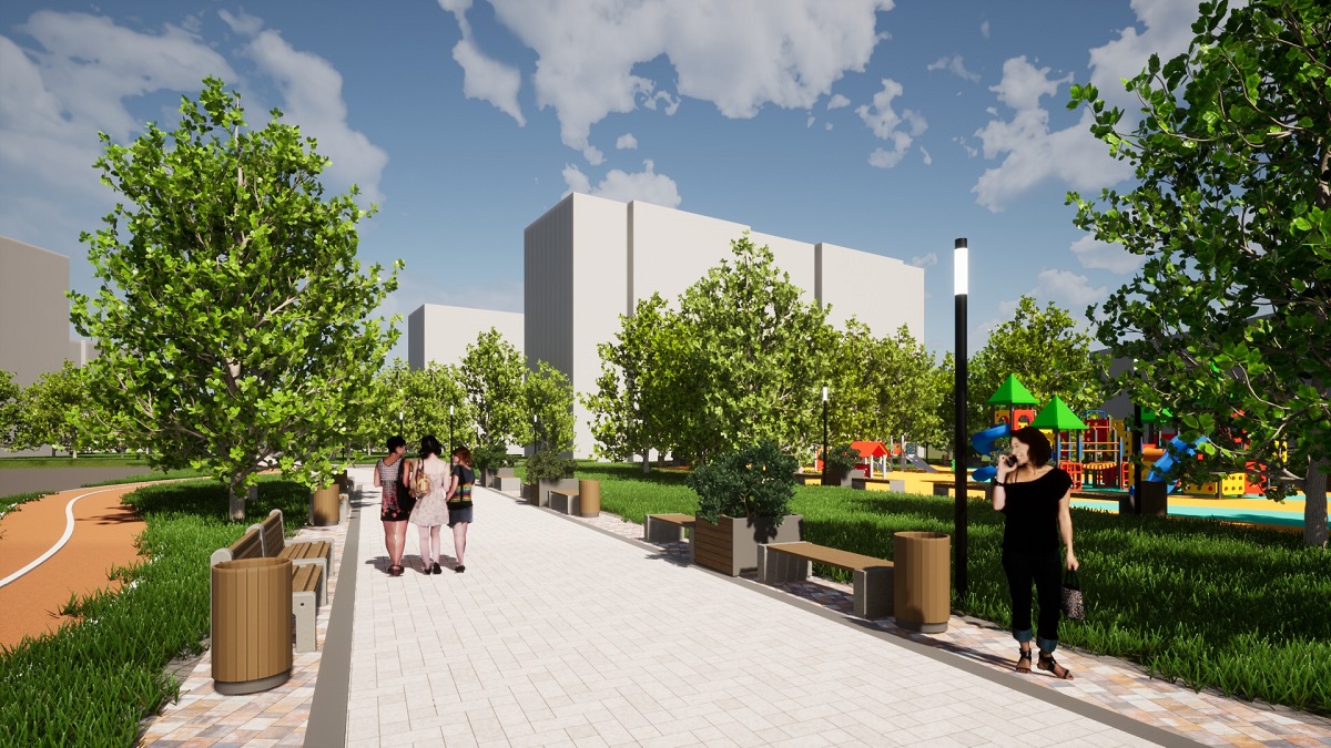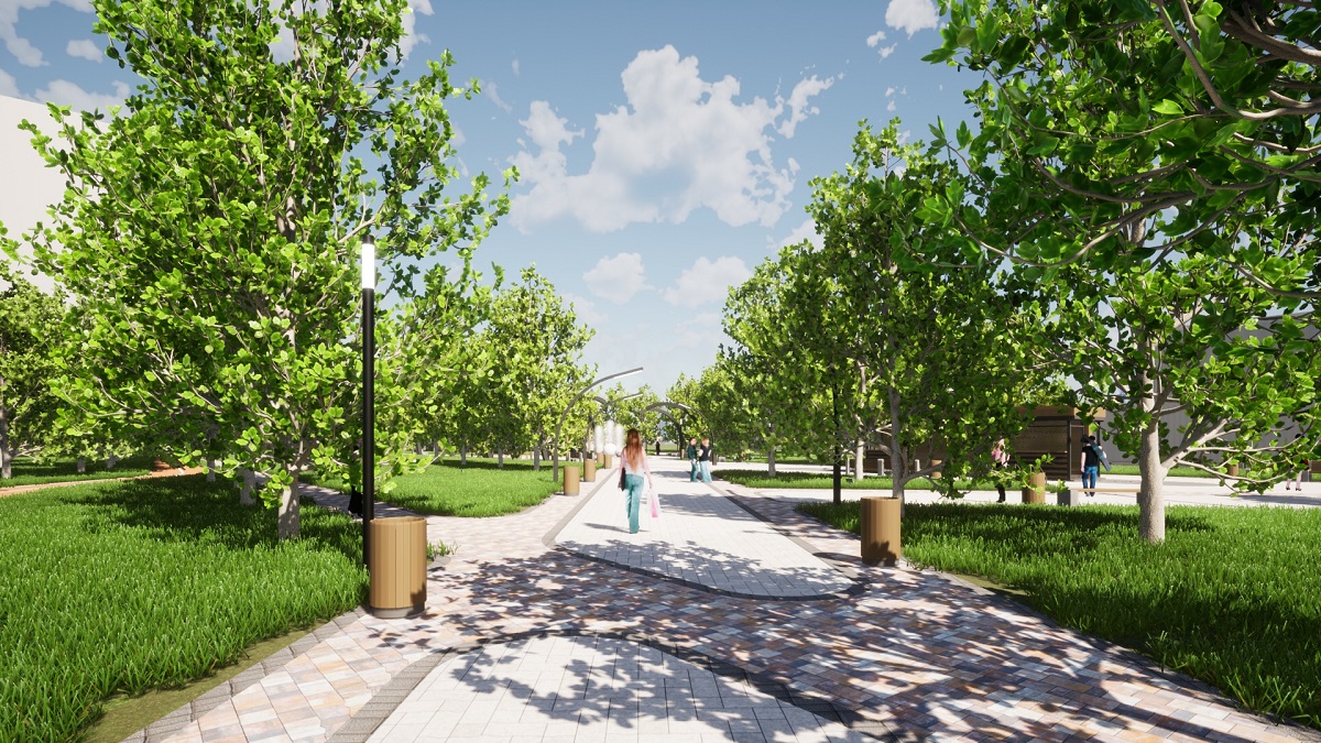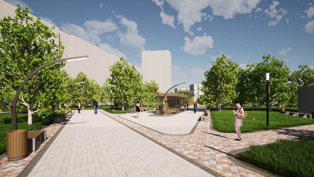 В ближайшее время начнутся работы по устройству сетей связи, покрытия пешеходных дорожек из бетонных плит, устройству покрытия из рулонного газона.