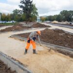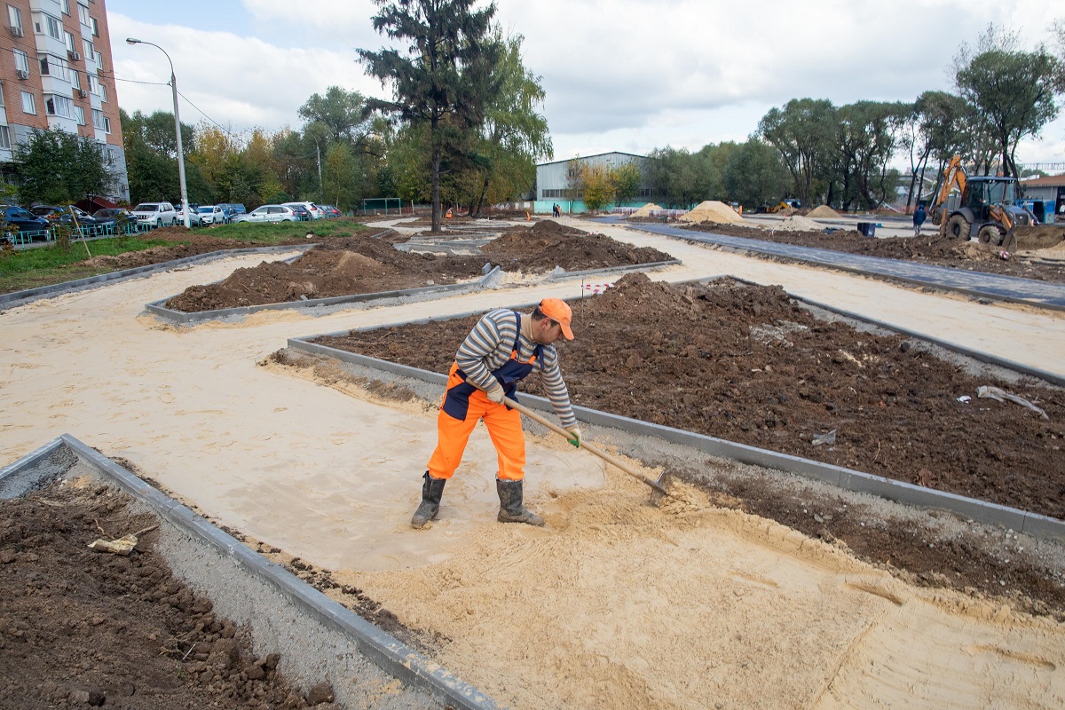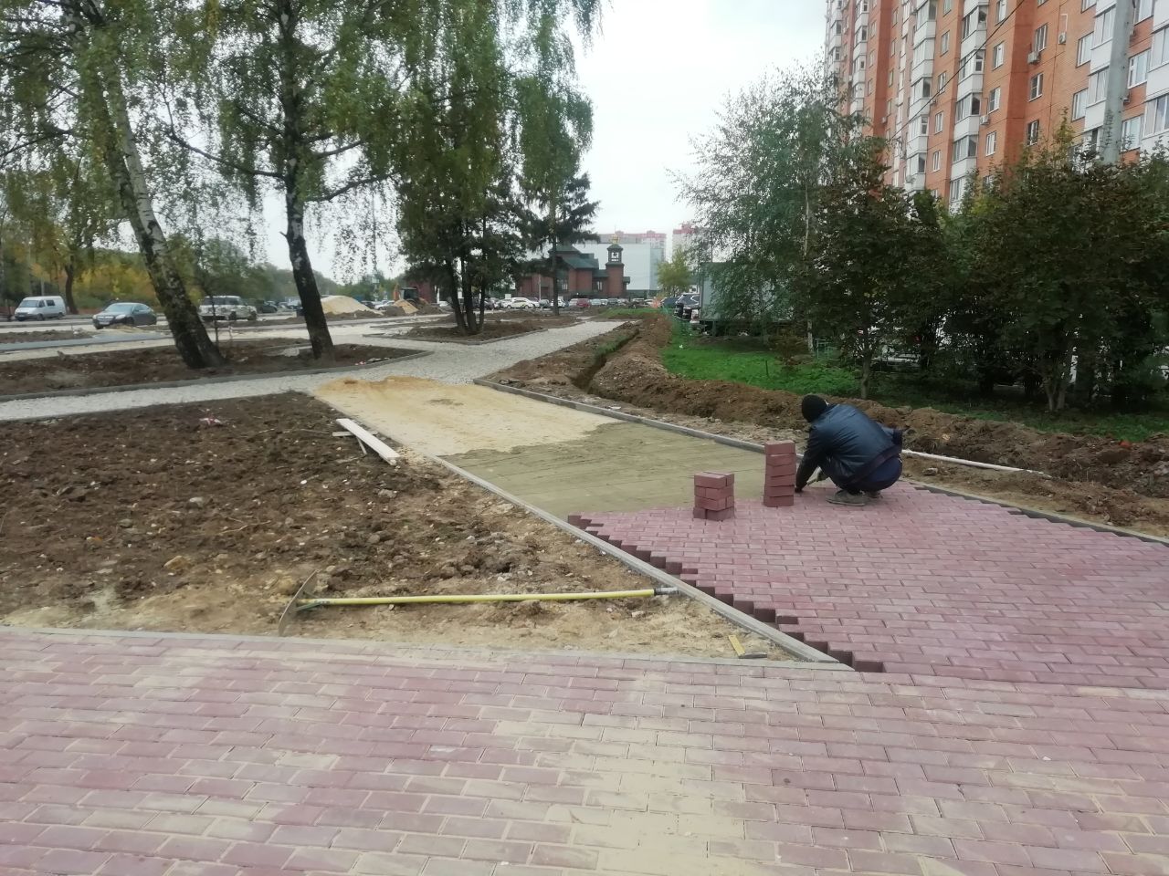 Сегодня на объекте работают 19 человек и 6 единиц техники. В настоящее время там прокладывают траншеи под кабель для столбов освещения. Начали укладывать брусчатку, бетонировать основания под клумбы и подпорные стенки-скамейки. Завершение работ планируется к 15 октября.