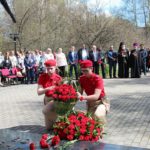 После минуты молчания к монументу возложили памятные гирлянды и цветы. Завершилась линейка троекратным «Ура!», после чего собравшиеся хором спели песню «День Победы».