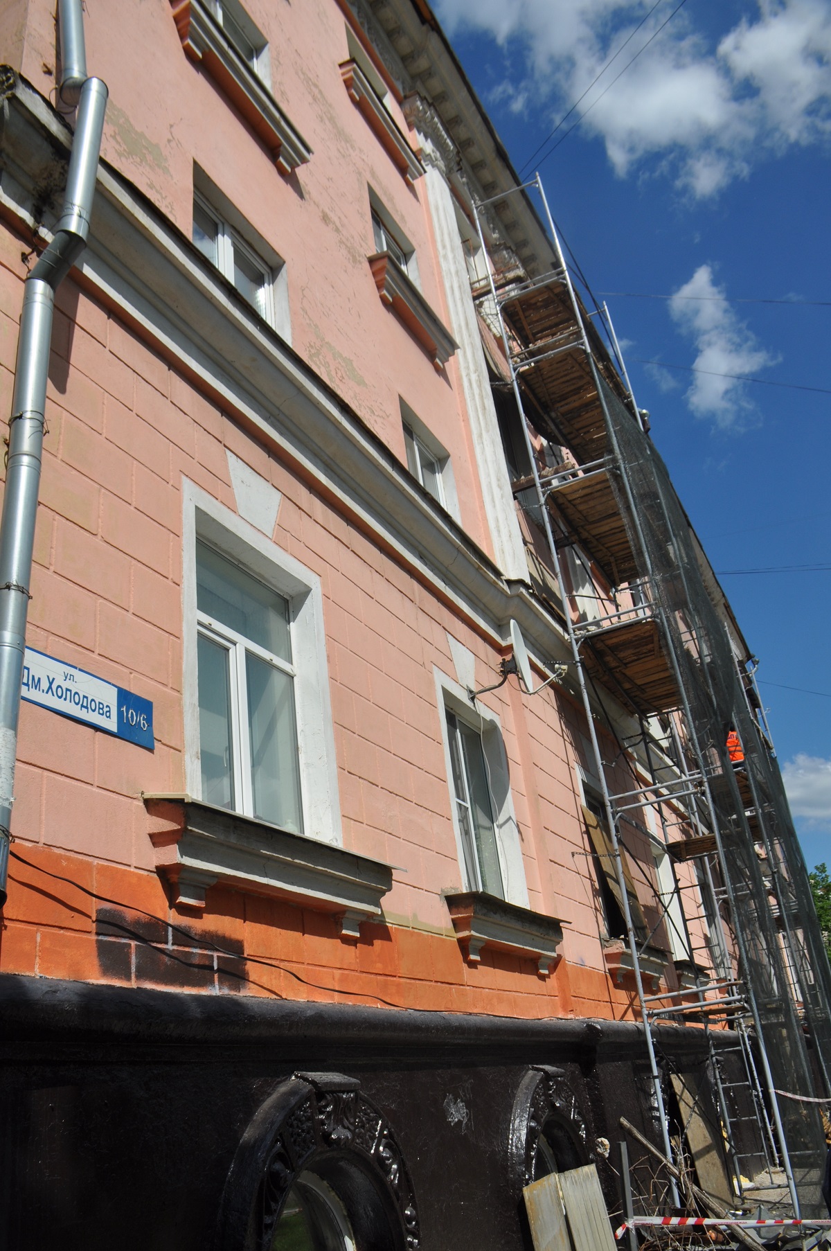Крыша дома по улице Холодова, 10/6, была покрыта новой металлической кровлей с наружным водостоком в 2018 году, тогда же здесь была произведена замена инженерных сетей, центрального отопления, канализации и электрических сетей. Этим летом предстоит отремонтировать фасад здания, заменить балконные плиты, установить пластиковые окна в местах общего пользования (в подвальной и подъездной частях) и входные металлические двери с утеплением, отремонтировать козырьки над подъездами.