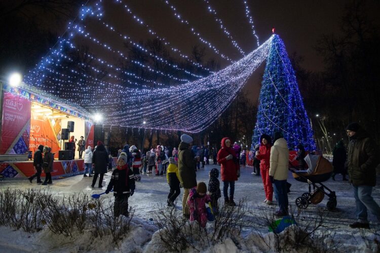 …В парке имени Виктора Талалихина царила предновогодняя атмосфера: красочная иллюминация, световые фигуры Деда Мороза и Снегурочки, тематические фотозоны, новогодние мелодии в исполнении духового оркестра и, конечно же, красивая большая ёлка. Артисты Дома культуры имени Лепсе и Дома культуры ЗиО подготовили для гостей театральное представление и интерактивные программы с зажигательными танцевальными флешмобами. Никакой мороз не мог помешать веселью, но если кто-то всё-таки замёрз, его ждал бесплатный горячий чай из самовара и баранки.