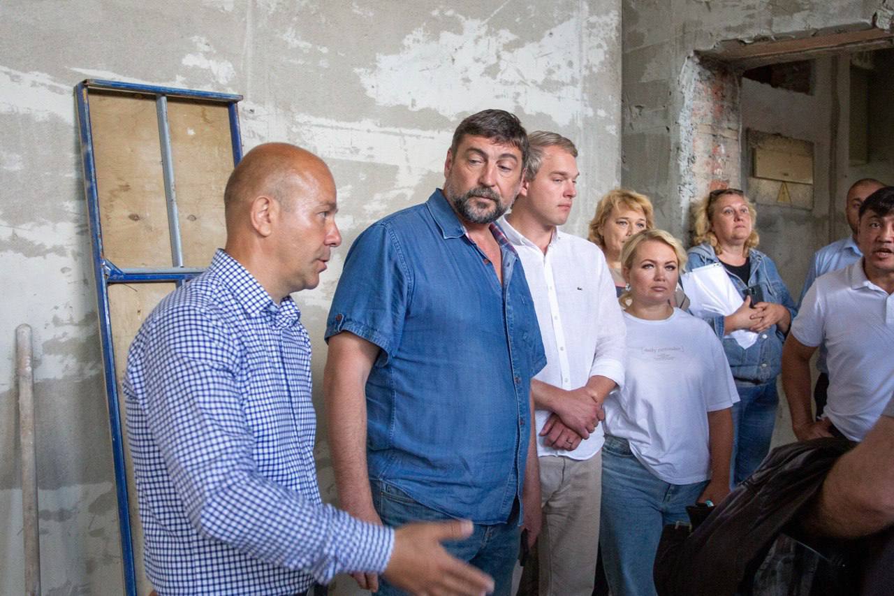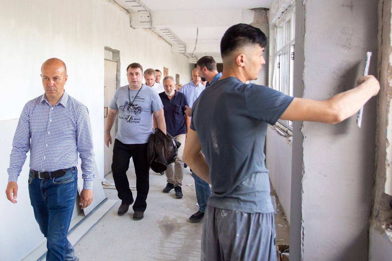 Ход капитального ремонта в лицее №5 проинспектировали в субботу министр транспорта и дорожной инфраструктуры Правительства Московской области Алексей Гержик и глава г. о. Подольск Дмитрий Жариков.