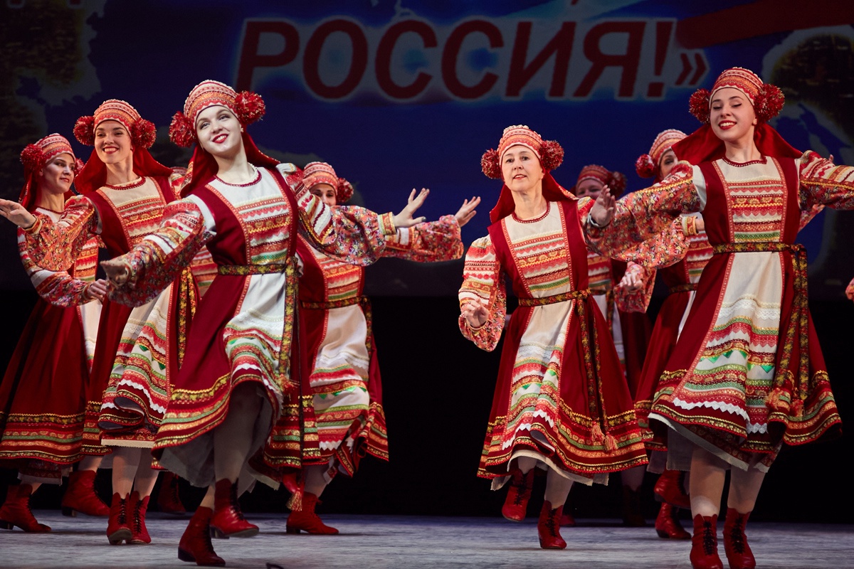 Концертную программу открыл русский хоровод в исполнении народного коллектива «Ансамбль народного танца «Рассвет» Дома культуры «Металлург» мкр. Львовский.