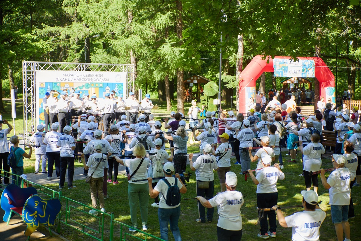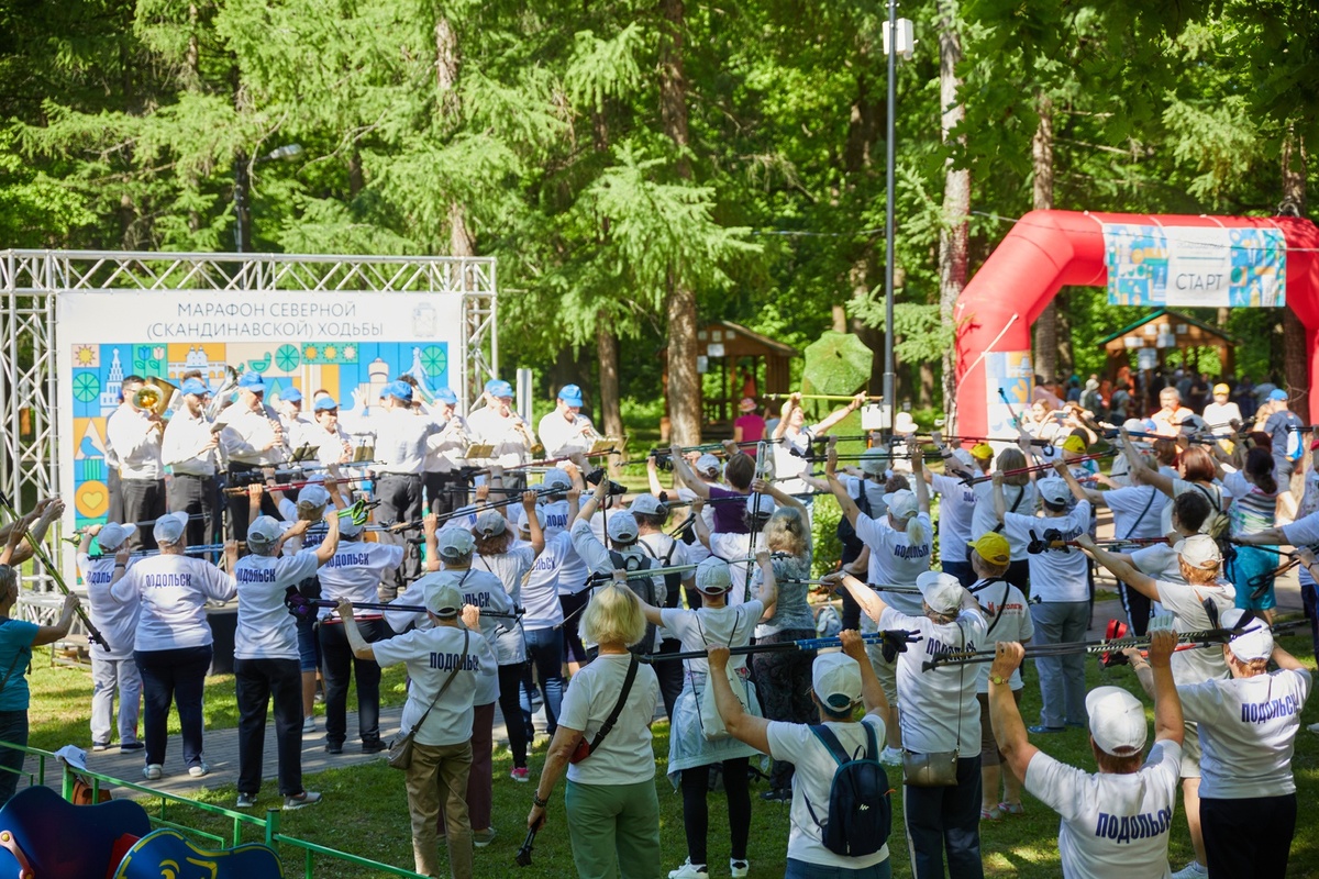 9 июня в парке культуры и отдыха «Дубрава» микрорайона Климовск состоялся марафон по скандинавской ходьбе, приуроченный к предстоящему празднику – Дню России.
