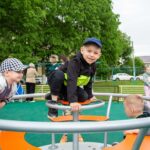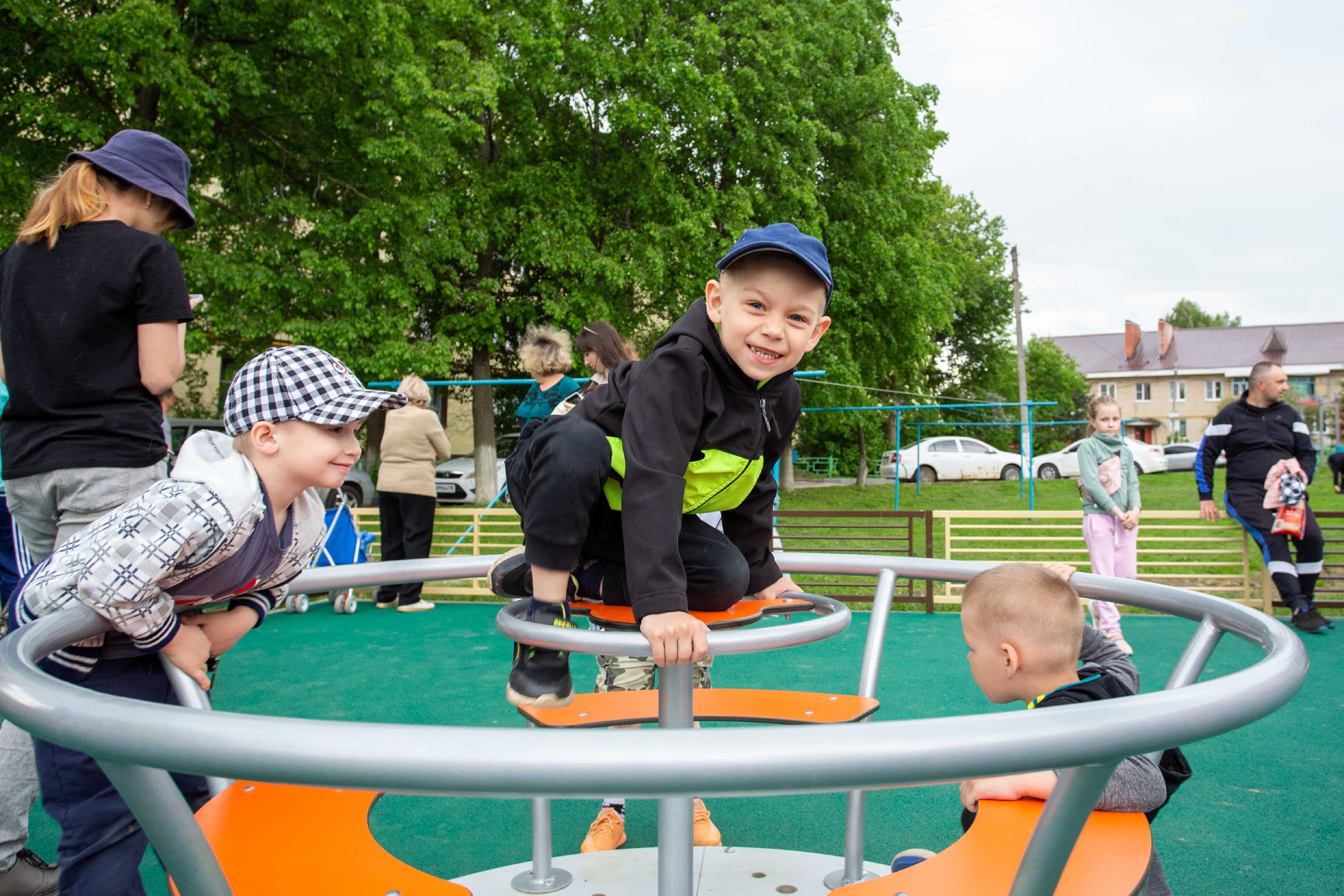В распоряжении ребят качели на цепном подвесе и качели «гнездо», карусель, качалка на пружине, гимнастический комплекс и многое другое.
