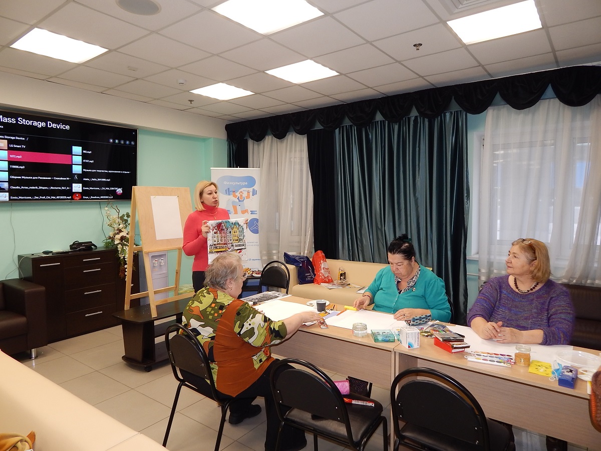 — На прошлом занятии мы учились рисовать деревья, а сегодня решили, что будем пробовать изобразить дома, расположенные на площади. Участники занятия узнали, что такое перспектива и как сделать рисунок объёмным, после чего они сделали черновой набросок карандашом, а затем начали работать с акварельными красками. На мой взгляд, рисование помогает расслабиться, включает фантазию, наши участницы получают удовольствие от процесса! – сказала Олеся Александровна.
