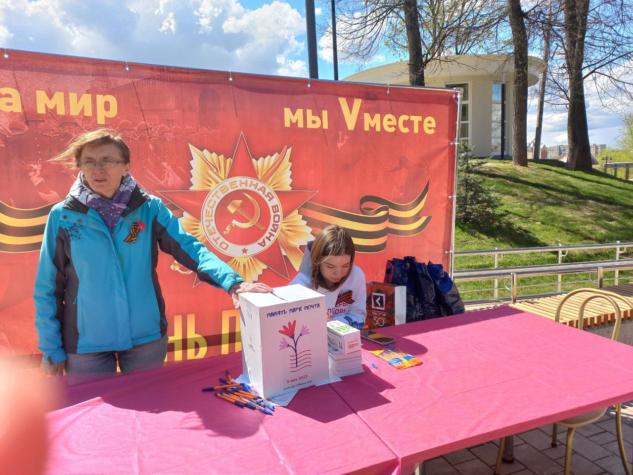 Она проводится впервые в День Победы в ряде парков Подмосковья. Здесь любой желающий может бесплатно получить специальную праздничную открытку и отправить ее своим друзьям и родным в любую точку страны и мира. Специальный почтовый ящик установлен у памятника Виктору Талалихину. Заполнить почтовые карточки помогают волонтеры. После акции все открытки передадут Почте России для дальнейшей рассылки. В акции активно участвуют жители всех возрастов.