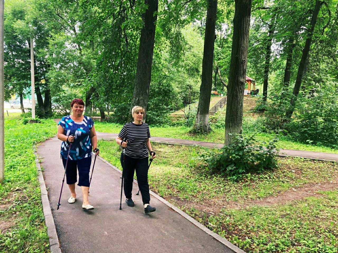 По проекту «Парки Подмосковья» в филиале Парка культуры и отдыха имени Виктора Талалихина в селе Сынково специалисты структурного подразделения «Родник» Сельского дома культуры «Романцево» бесплатно проводят занятия по скандинавской ходьбе.