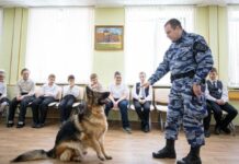 В Подольске кинологи и их четвероногие помощники приехали в гости в школу № 16...